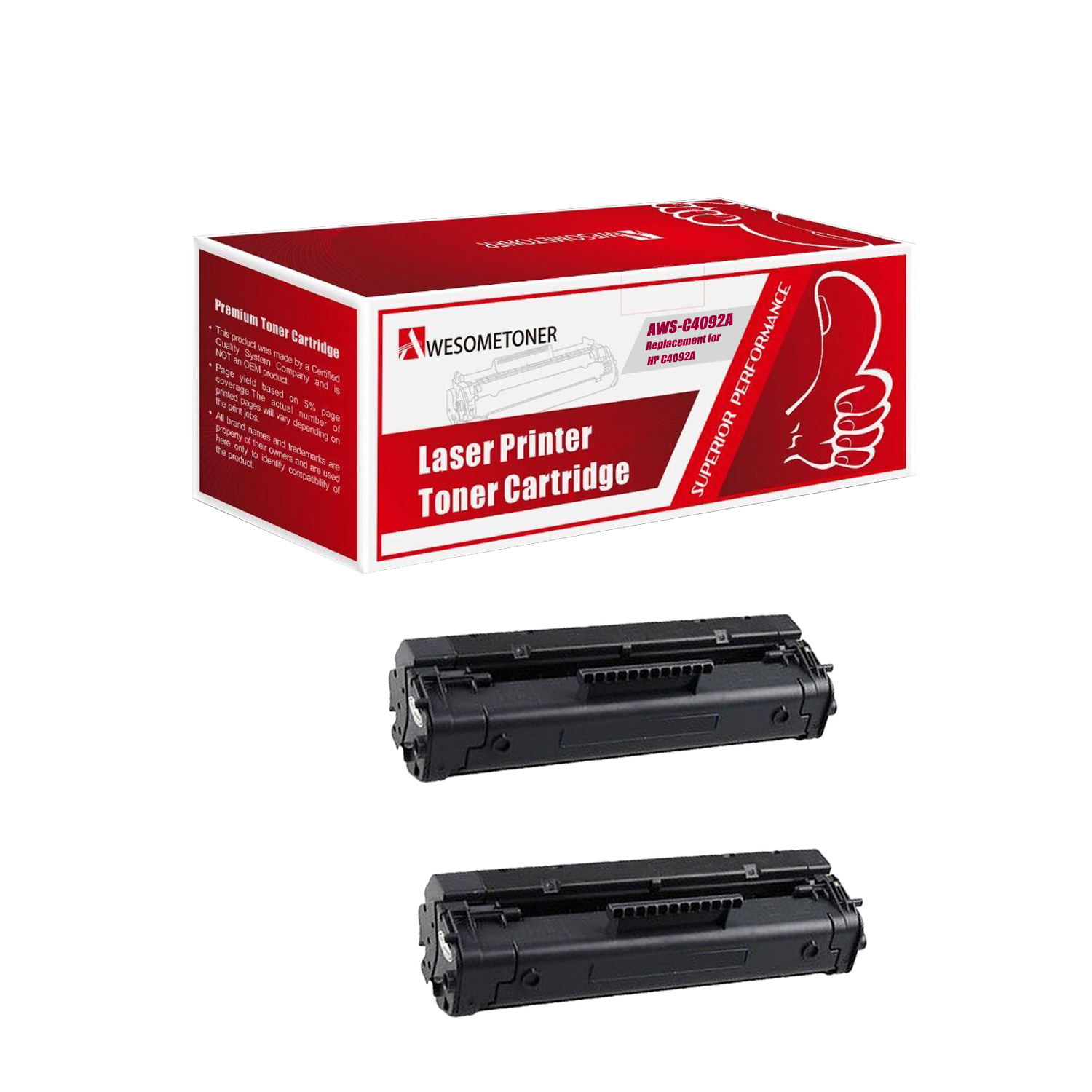 Awesometoner 2 Pack Remanufactured Replacement Laser Toner Cartridge for Hewlett Packard C4092A (HP 92A) Black