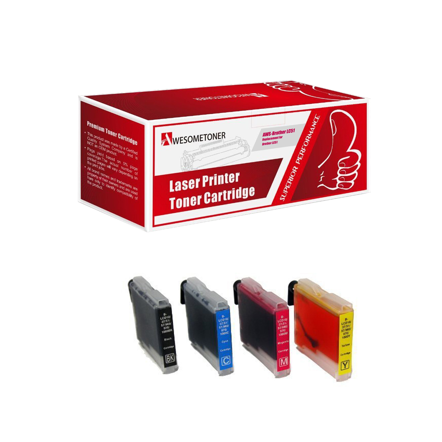 Awesometoner 4PK Set NON-OEM LC51 Set (LC51BK LC51C LC51M LC51Y) For Brother LC-51 Black Cyan Magenta Yellow Ink Cartridge Set for Brother DCP-130C MFC-240C MFC-3360C MFC-440CN MFC-465CN MFC-5460CN MFC-5860CN MFC-665CW MFC-685CW MFC-845CW Printer High Quality!