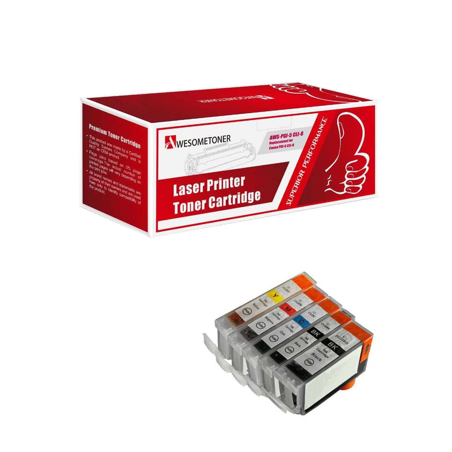Awesometoner 5-Pack of Non-OEM CANON Printer Ink Cartridges with chip PGI-5 CLI-8 Bk,C,M,Y For printer ip4200/3300/3500/4300/4500/5200/5200R/5300