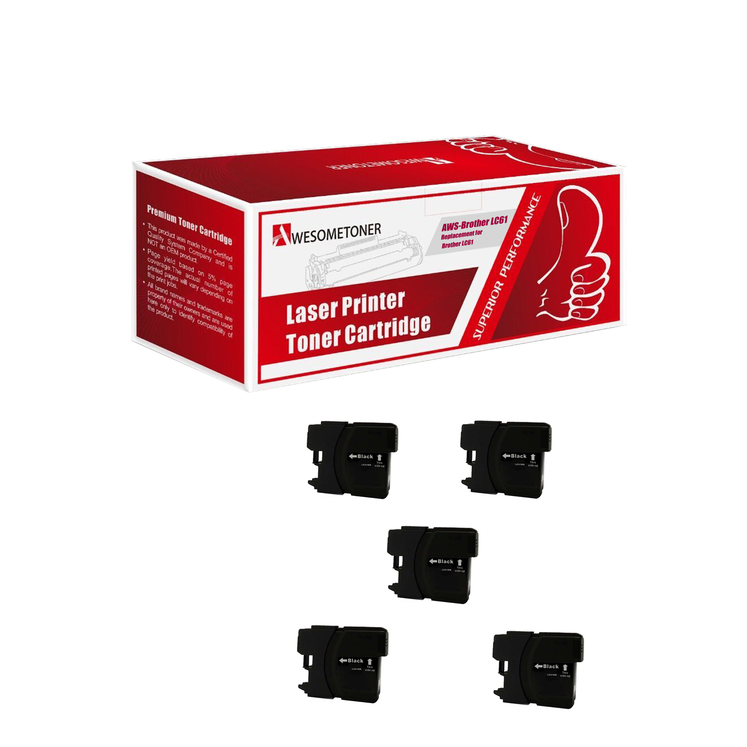 Be the first to review “Awesometoner 5PK NON-OEM LC61 BK For Brother LC61BK Ink Cartridge For DCP-165C DCP-385C DCP-585CW”