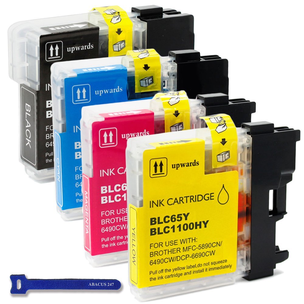 Compatible Brother LC65 LC-65 Black & Color Ink Cartridges [4 Pack] for Brother MFC-5890CN, MFC-5895, MFC-5895CW, MFC-6490CW, MFC-6890CDW, MFC-845CW, MFC-885CW Printers