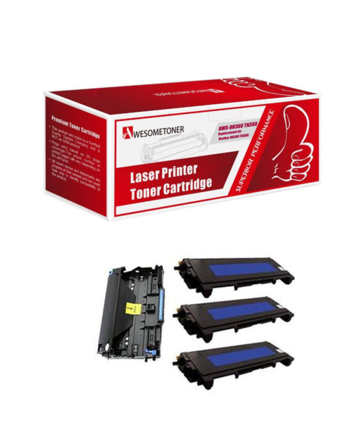 Awesometoner Compatible Drum Unit + 3 x Toner Cartridge Replacements for Brother DR-360 and TN-360, for use with Brother MFC 7340 7345N 7440N 7840W / HL 2140 2170W / DCP 7030 7040 Printer