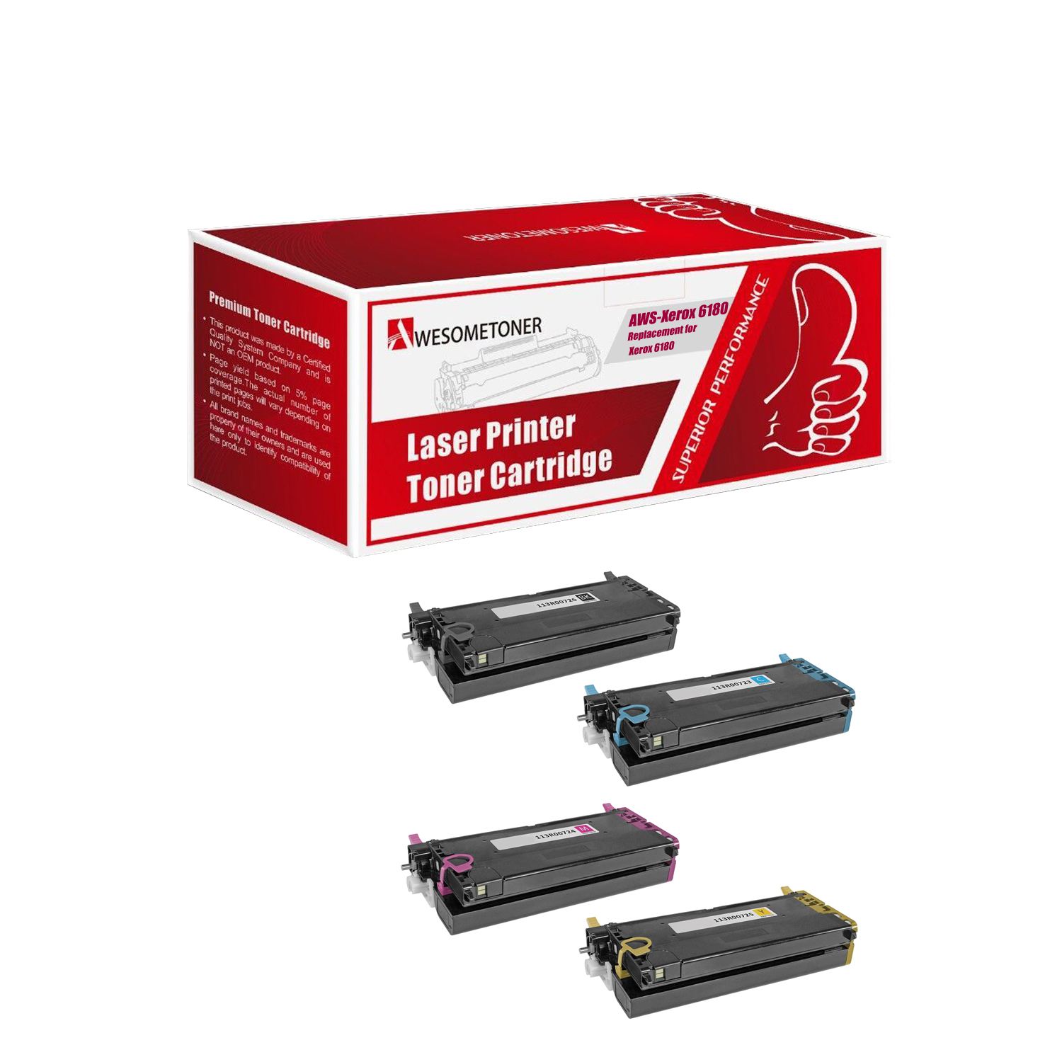 Awesometoner High Yield Xerox Phaser 6180, Phaser 6180MFP Toner Cartridge Set, Xerox 113R00726 Black 113R00723 Cyan 113R00725 Yellow 113R00724 Magenta Toner Cartridges Remanufactured