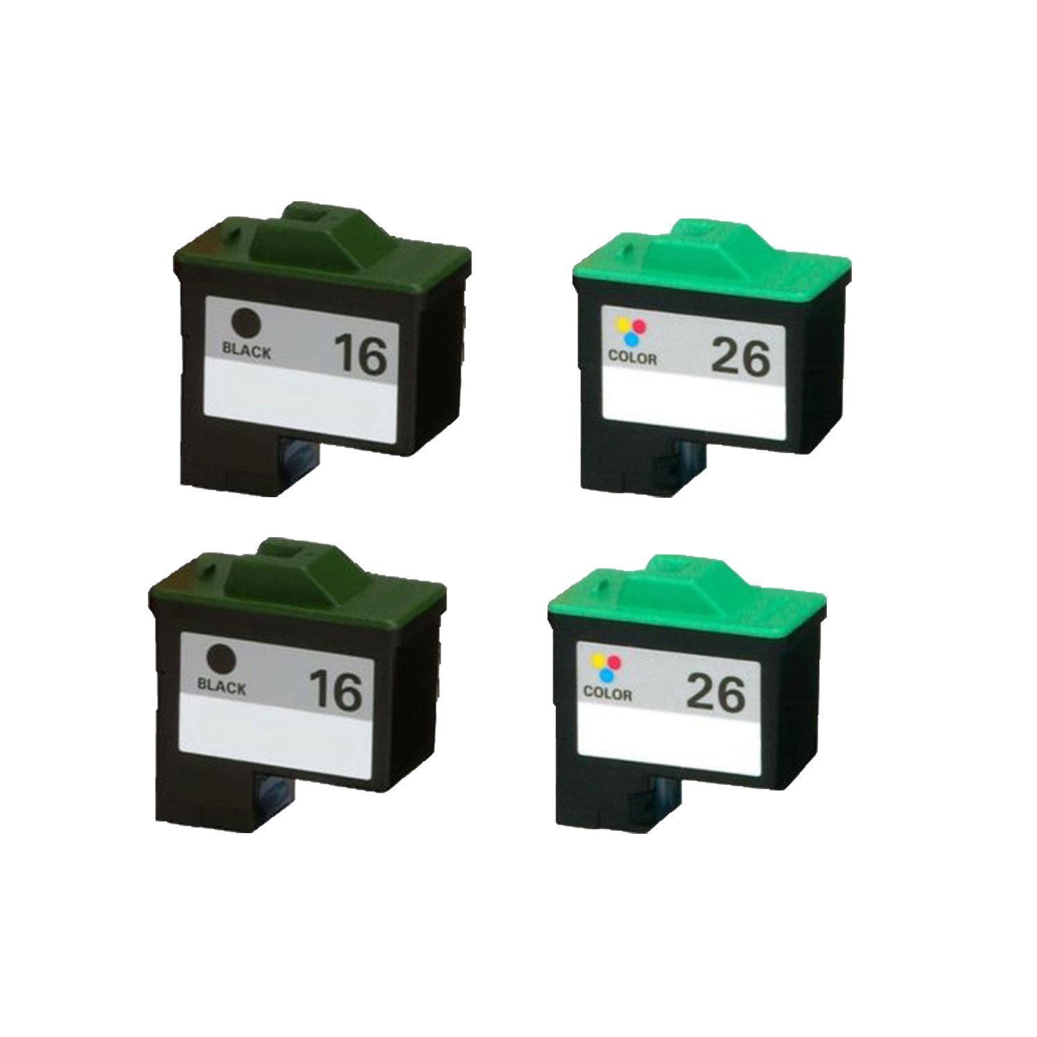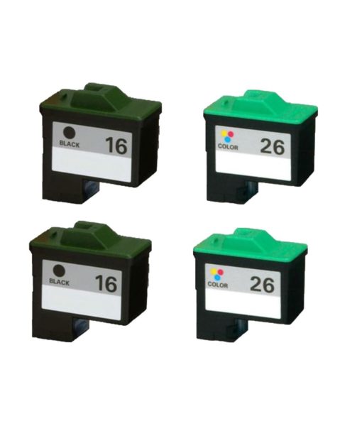 Remanufactured Ink Cartridge Replacement for Lexmark 16 Lexmark 26 (2 Black 2 Color, 4 Pack)